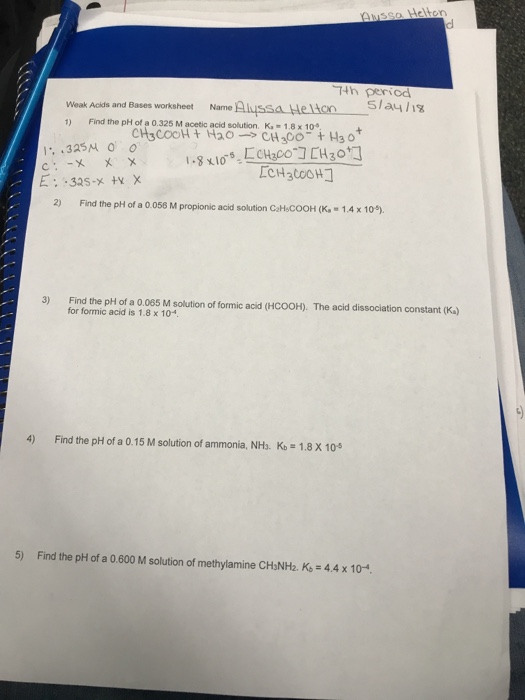 Acids and bases pogil awesome weak acid base and salt problems key 1 from acids bases and ph worksheet answers , source:alisonnorrington.com.